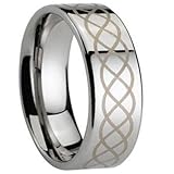 - 8MM Men's or Ladies Tungsten Carbide Ring Wedding Band with Laser Engraved Celtic Knot Design